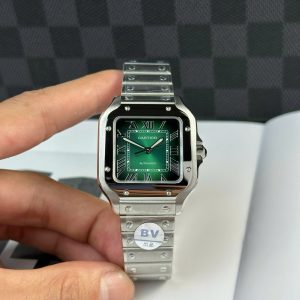 ĐỒNG HỒ CARTIER SANTOS REP 11 MẶT SỐ MÀU XANH LÁ MÁY CƠ TỰ ĐỘNG BV FACTORY 35.1MM