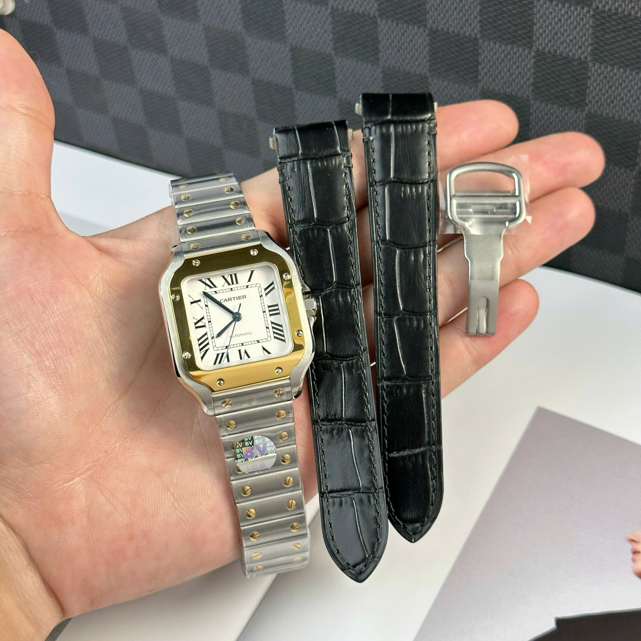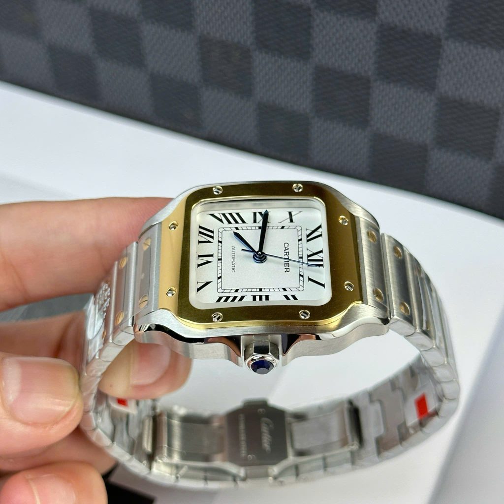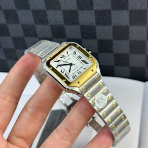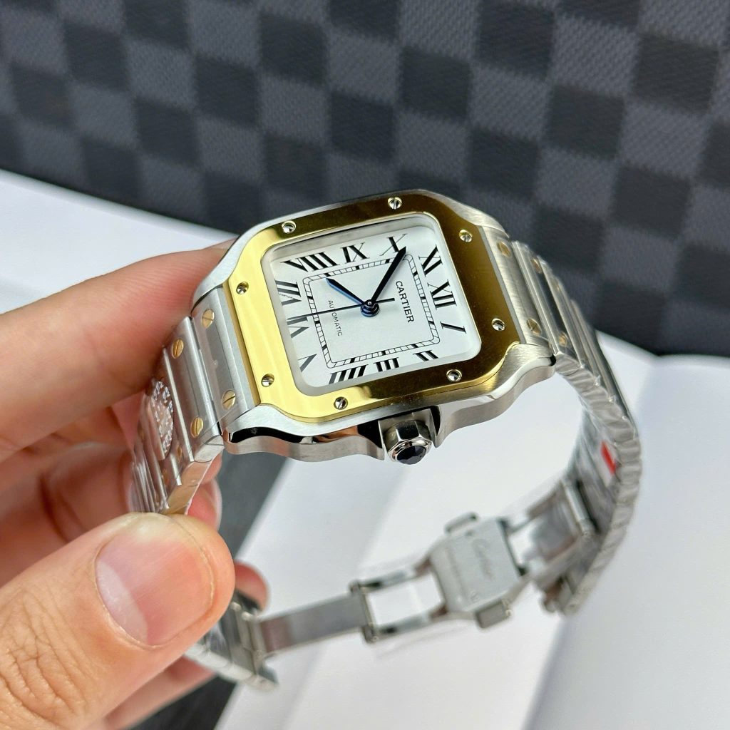 ĐỒNG HỒ CARTIER SANTOS CHẾ TÁC DEMI MẠ VÀNG GOLD MẶT SỐ MÀU TRẮNG AUTOMATIC BV FACTORY 35.1MM