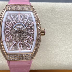 FRANCK MULLER V32 BEST REPLICA WATCH ROSE GOLD PLATE RHINESTONE FULL CASE PINK DIAL ABF FACTORY 36MM