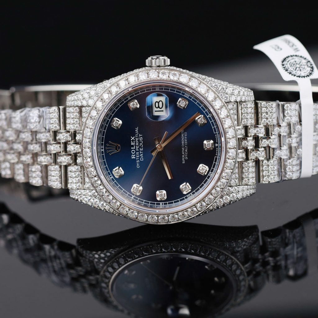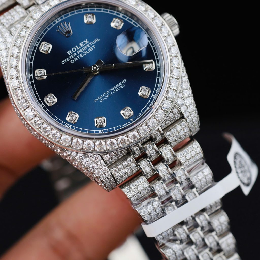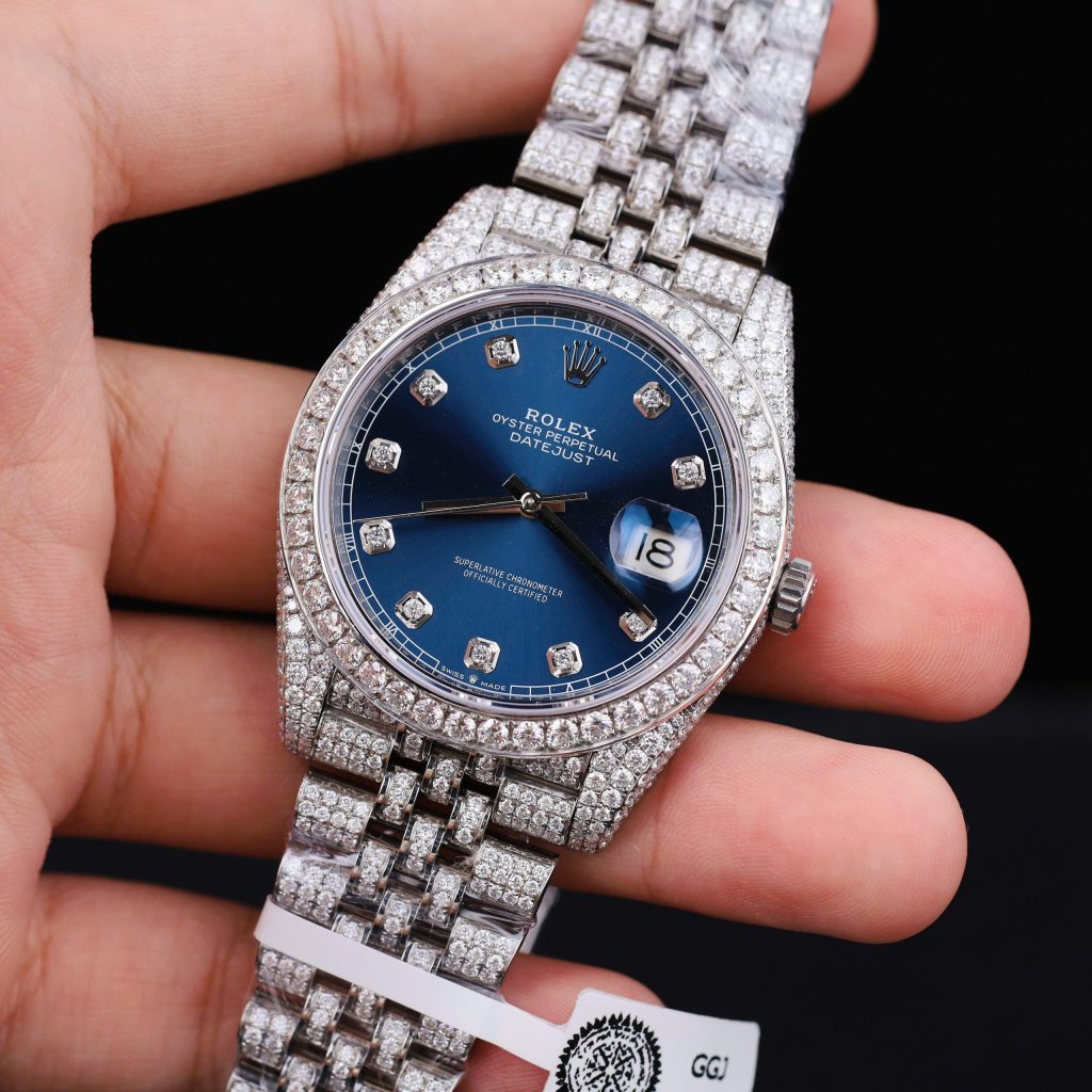 Be the first to review “ROLEX DATEJUST GOOD IMITATION WATCH BLUE DIAL ICED OUT DIAMOND MOISSANITE CLEAN FACTORY 41MM”